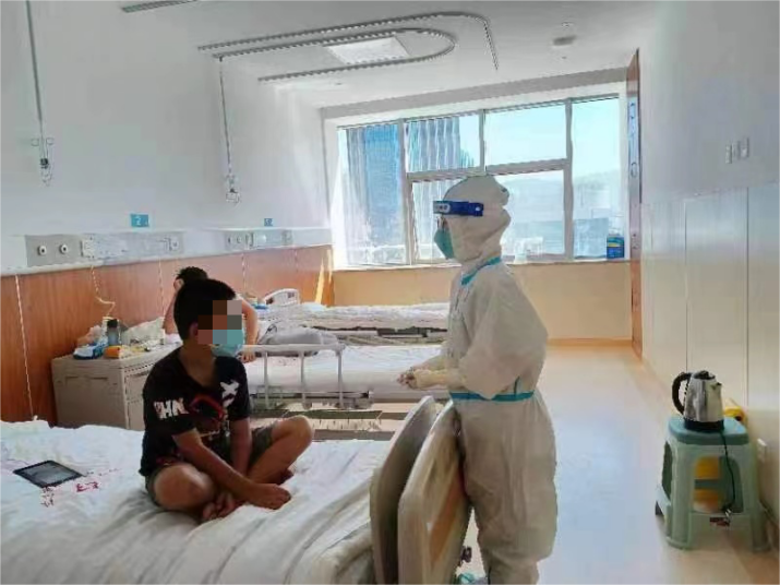 我们病区收治的大多是儿童患者,作为一名家长,我深知相比于对病毒的恐惧,他们对陌生环境和离开父母的恐惧可能会更重。张蓓主任说:“他们就像每日的朝阳”,拥有无限的活力和生命力。我们在医护救助工作中,除了给予中西医结合的专业医疗外,还要给这些小患者们充分的心理干预、人文关怀。要让他们感受到来自“大白”身上的爱与温暖。于是,在我们的病区,没有被疫情冰冷地围绕,反而经常从病房里传出孩童们稚嫩地笑声。在通过对症支持等联合治疗措施后,他们的症状得到快速的改善,检测指标很快就达到了出院或解除医学隔离的标准。