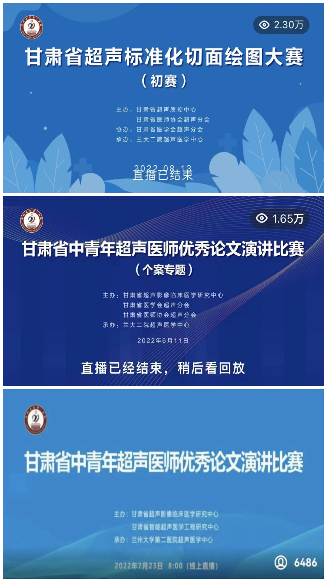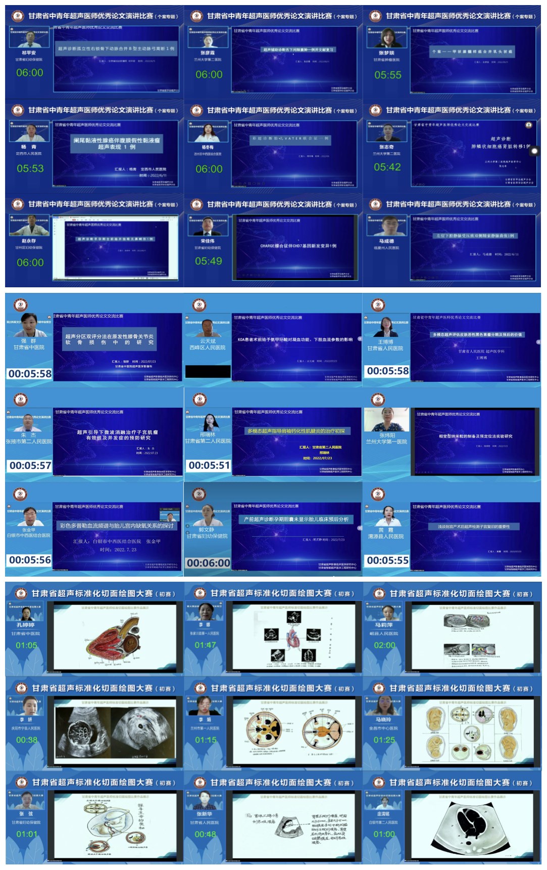 近期,由甘肃省超声质控中心、甘肃省超声影像临床医学研究中心主办,甘肃省医师协会超声分会协办,兰大二院超声医学中心承办的“甘肃省超声医师优秀论文(个案专题、论著专题)演讲比赛”“甘肃省超声标准化切面绘图大赛(初赛)”分别于6月11日、7月23日、8月13日在线相继成功举办。甘肃省科技厅社会发展处处长成于、甘肃省卫健委医政处处长白育萍、甘肃省医师协会秘书长江源出席开场仪式并致词。甘肃省超声质控中心,甘肃省医师协会超声分会会长,兰大二院副院长、超声医学中心主任聂芳教授主持开场仪式。