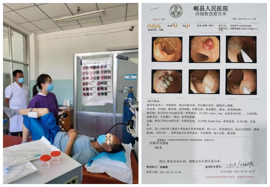 8月15日,正在上门诊的帮扶队员、消化科冯洁医生接到内二科医生的电话,告知能否为一名结肠巨大腺瘤的患者联系转院。此时,因为兰州的疫情刚刚好转,过频繁的人员流动不利于疫情的防控,而且,上级医院的就诊导致患者时间成本和金钱成本的增加。冯洁第一时间进行了沟通,建议患者在岷县人民医院进行内镜下手术。