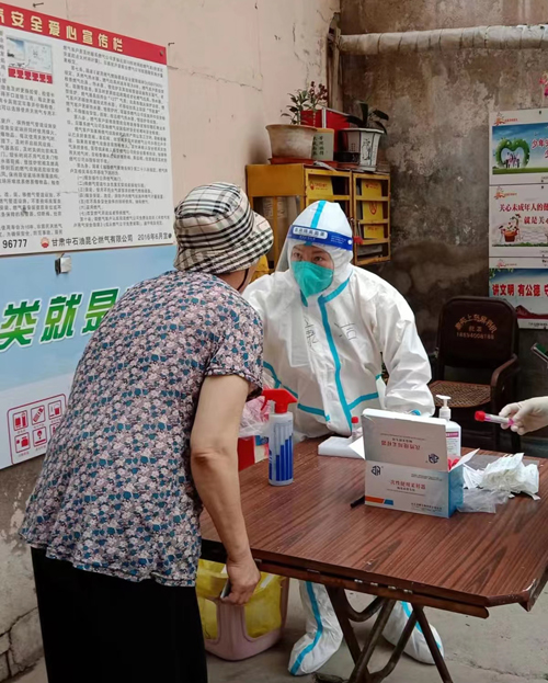一个多月奋勇抗疫,我分别赴城关区火车站、草场街、酒泉路、张掖路和临夏路等街道30多天里核酸采样近万份,在规范的采集操作下我未发生过一次交叉感染,未出现过一例信息不对称,每一份样本、每一次消毒都做到准确、高效、快速,无一纰漏。