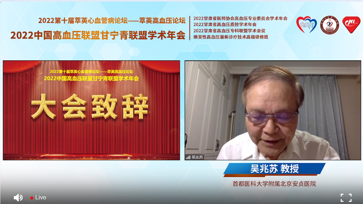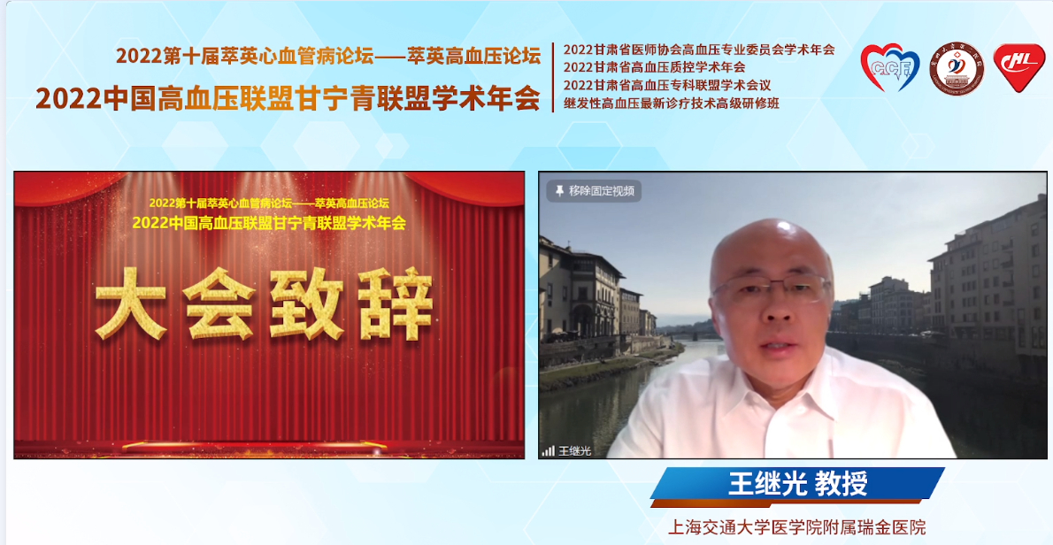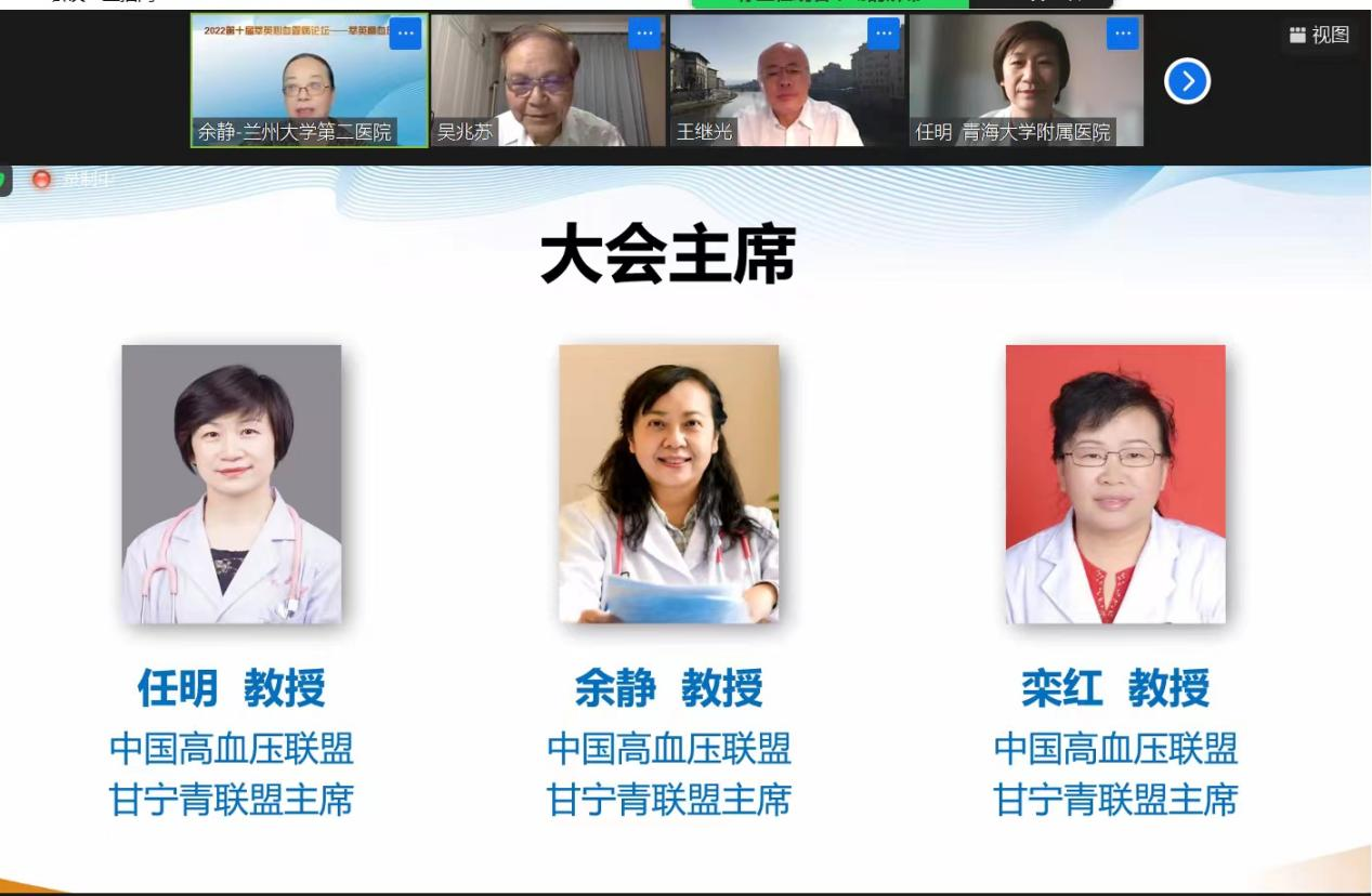 8月26日,由中国高血压联盟甘宁青联盟、甘肃省高血压医疗质控中心、甘肃省医师协会高血压专业委员会、以及甘肃省高血压专科联盟主办,兰大二院承办的第十届萃英高血压论坛暨2022中国高血压联盟甘宁青联盟学术年会顺利召开。中国高血压联盟前主席、北京安贞医院前副院长吴兆苏教授,中国高血压联盟主席、上海交通大学医学院附属瑞金医院王继光教授出席会议。因疫情防控需要,为避免人群聚集,本次大会采用互联网直播的方式进行,当日在线观看人数超过一万人次。会议由甘宁青高血压联盟联合主席、兰大二院心血管内科主任余静教授主持。