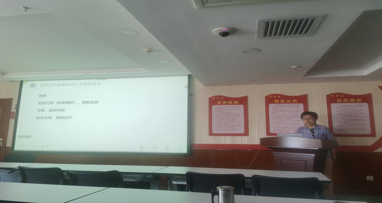 儿童医院副院长徐丁教授从氨的代谢(尿素循环)、高氨血症的定义、临床表现、诊断和鉴别诊断、急诊处理和维持治疗等方面介绍了高氨血症的诊治,重点讲解了血氨标本的留置方法和快速检测。儿童功能检查科主治医师雷海燕介绍了胎儿心脏畸形产前超声筛查六大畸形:无脑儿、严重的脑膨出、严重的开放性脊柱裂、严重的胸腹壁缺损伴内脏翻出、单腔心、致死性软骨发育不良。小儿神经科主治医师代彩娟讲解了SMA(脊髓性肌萎缩症)的基因疗法,分享了多例经我院诊治SMA患儿的诊治经过和疗效。