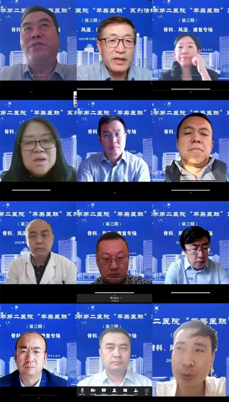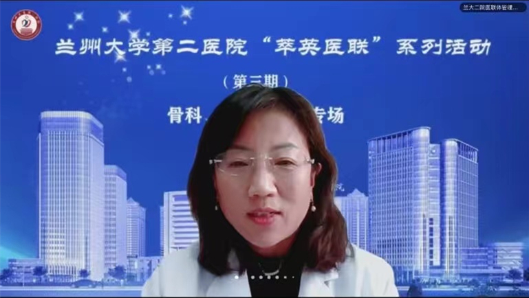 10月21日,兰大二院“萃英医联”系列活动(第三期)——骨科、风湿、康复疑难病例会诊指导专场顺利召开。兰大二院骨科、风湿科、康复科专家团队及来自省内68家基层医院300多人共同线上参会。副院长聂芳出席会议,骨科主任夏亚一主持病例会诊讨论,发展规划处处长阎立新致开场辞。
