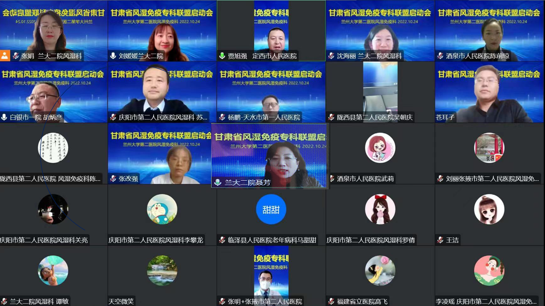 来自白银、张掖、静宁、陇西、定西、酒泉、天水、平凉、庆阳的9家医院风湿免疫科入选了本次甘肃省风湿免疫专科联盟“第一批”成员单位。各医院负责人逐一介绍了科室的基本情况,提出了未来的合作需求,希望通过在甘肃省风湿免疫专科联盟的带动下,能够不断促进专业发展。