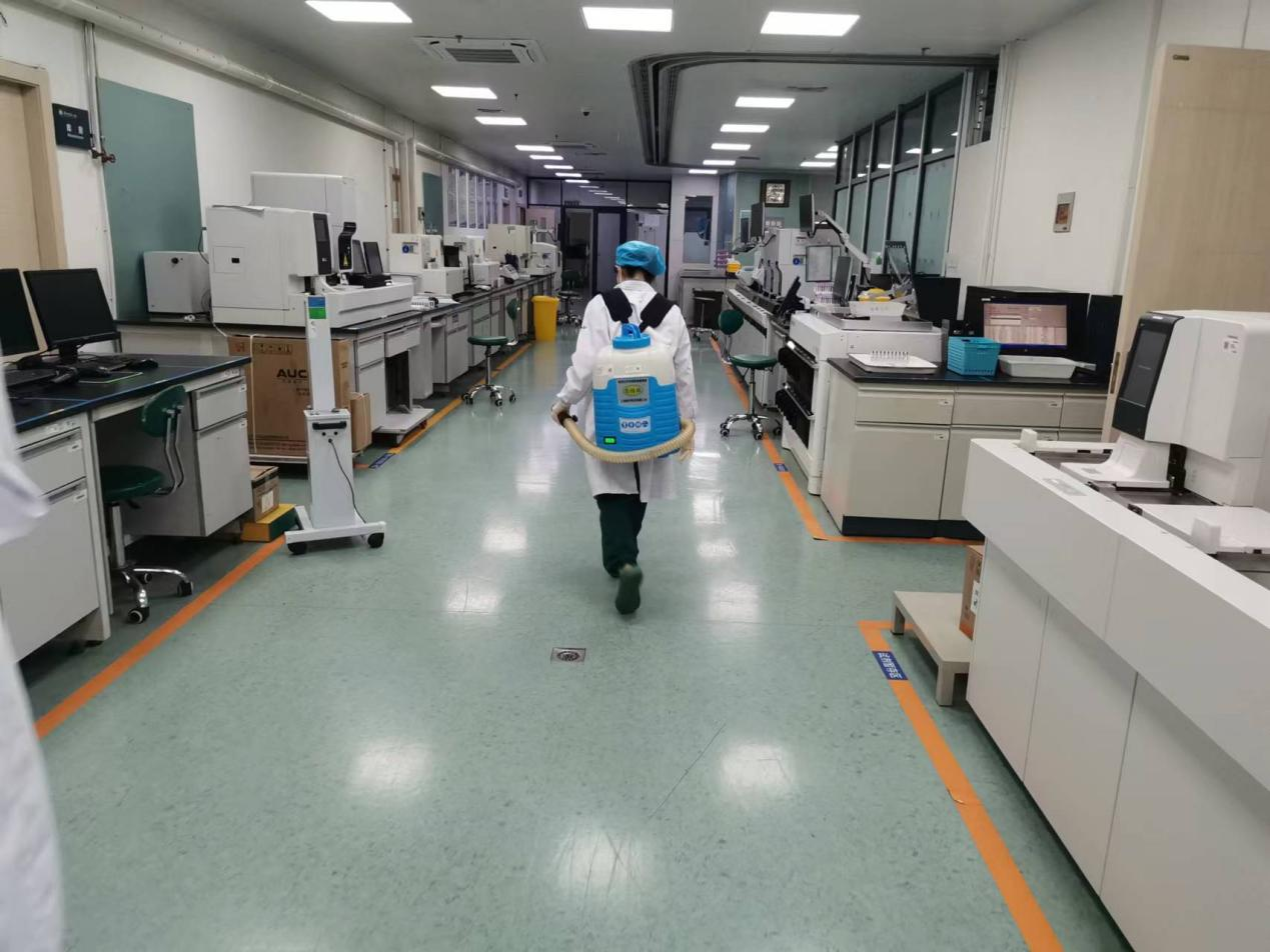 人人都是院感防控践行者,人人都是院感防控督导员。面对当前疫情的严峻性和检验工作的特殊性,检验医学中心为确保检验工作的顺利进行,严格落实院感防控,切实执行科内网格化管理。对检验医学中心进行区域化封闭管理,包括在岗的检验人员、保洁和外勤队员均吃住在科室。门诊人员二级防护,全中心每日两次实验室消毒,确保院内无感染的发生。