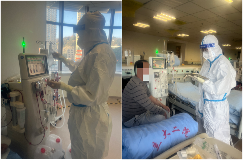 在做好患者透析治疗的同时,科室还要全力以赴做好防疫工作,所有工作人员都身兼“透析”和“防疫”双重重任。血透室是一个开放的大环境,人流量大、出入频繁,这对血透室的医疗、护理及防疫措施提出了更高要求。在此期间,全体医护人员全力按照医院疫情防控工作部署,全员采取二级防护措施,每日严格进行环境物表消杀,在全面做好疫情防控的基础上,尽一切努力确保每一位透析患者都能得到及时治疗。