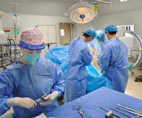 骨科主任夏亚一教授组织成立科室闭环人员梯队,积极完善患者术前检查与准备,并且与医务处、设备处、消毒供应中心、医疗保险管理处等相关部门联动做好手术相关保障工作。经过积极准备,在麻醉科、手术室、血管外科、肾病内科等相关科室同事的积极协助下,治疗小组成员姚长江医生、敏思聪医生、张小辉医生于近期先后为5名患者顺利完成了手术治疗。经过骨科一病区护理人员的精心护理治疗,术后患者均恢复良好,未发生卧床相关并发症,3名患者目前已恢复下地步行能力,医护人员的大爱精神和精湛技术得到了患者和家属的高度认可。
