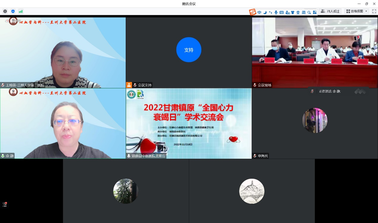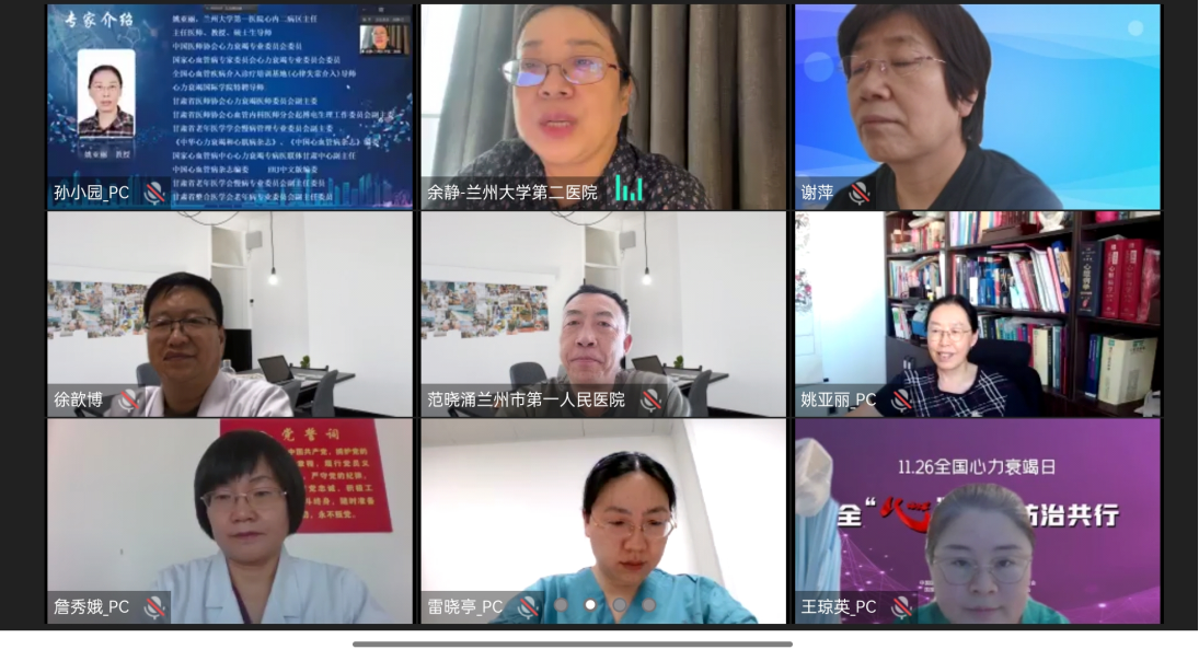 活动期间,甘肃省2022年“全国心力衰竭日”学术活动暨心力衰竭规范诊疗与质量控制系列讲座在线上召开。余静主任与兰大一院姚亚丽主任共同作为大会主席,组织全省心血管领域中青年骨干一起推广学习近两年中国医师协会心力衰竭专委会推出的心力衰竭诊疗的多项新指南、新共识、新理念和新技术。