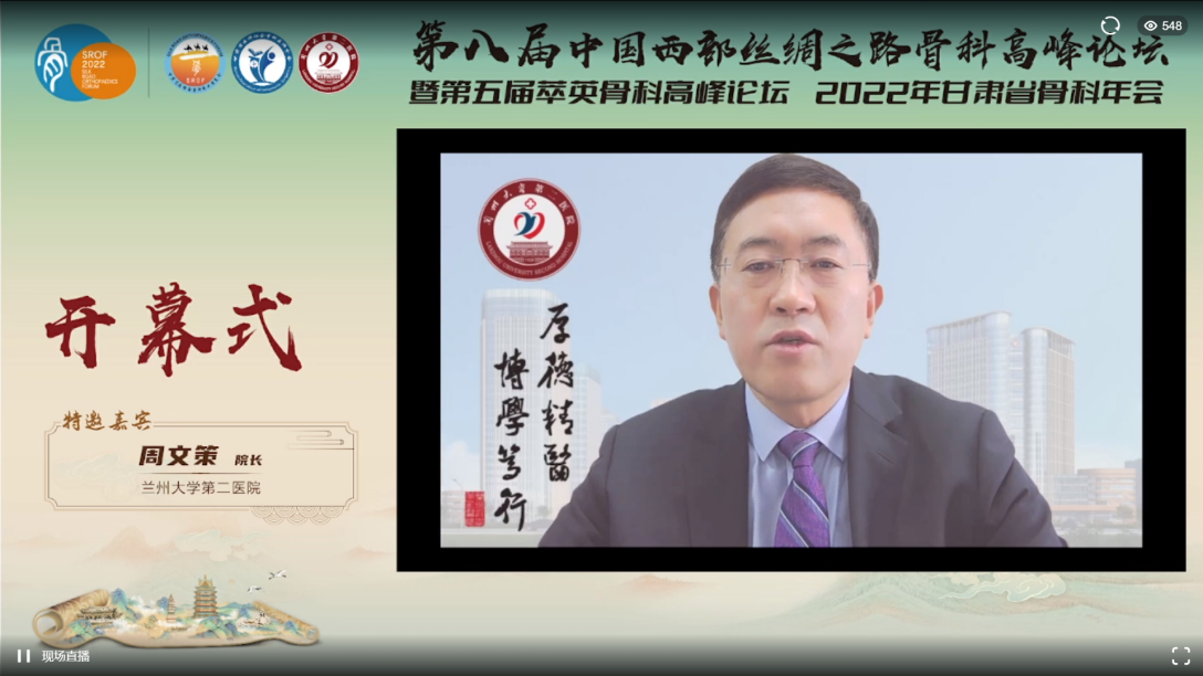12月23日-12月24日,由甘肃省骨科医疗质量控制中心、甘肃省医学会骨科专业委员会、甘肃省医学会运动医学专业委员会、甘肃省医师协会骨科医师分会联合主办,甘肃省骨科联盟、兰大二院骨科共同承办的第八届中国西部丝绸之路骨科高峰论坛暨第五届萃英骨科高峰论坛、2022年甘肃省骨科年会以线上授课+线下主持的综合模式召开。甘肃省卫健委主任郭玉芬、兰大二院党委副书记、院长周文策出席会议。