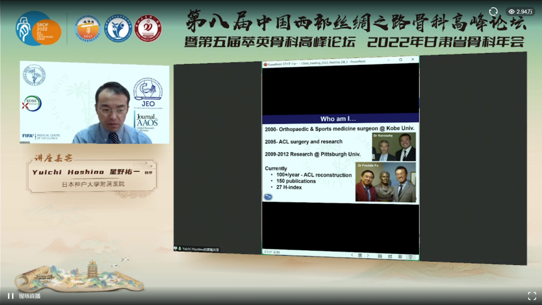 本次论坛设立大师讲坛,关节与骨肿瘤分会场,脊柱、创伤、小儿骨科分会场。特邀美国科罗拉多人工关节置换中心Porter Adventist医院Charlie Yang,查理 杨教授、日本神户大学附属医院星野祐一教授、中华医学会骨科学分会候任主委王坤正教授、中华医学会运动医学分会主任委员陈世益教授、中国人民解放军总医院王征教授、北京大学人民医院郭卫教授、北京大学第三医院敖英芳教授、李危实教授、广西医科大学赵劲民校长、北京积水潭医院蒋协远院长、天津医院马信龙院长、上海市第六人民医院张长青院长、西安红会医院郝定均教授、南通大学附属医院刘璠教授、华中科技大学同济医学院附属协和医院邵增务教授等涉及关节、脊柱、创伤、运动医学、骨肿瘤、小儿骨科等国内外40余位顶尖专家进行授课。兰大二院骨科各亚专业主任在内的省内26位骨科专家在线下主持了各节论坛,针对骨科上述6个亚专业新技术、新理论展开交流讨论,学术气氛热烈,线上参会人数总计超过8万人次。
