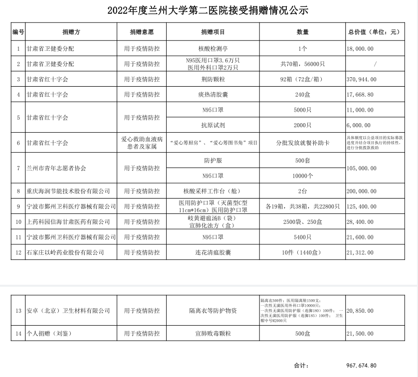 2022年度立博欧赔指数第二医院接受捐赠情况公示