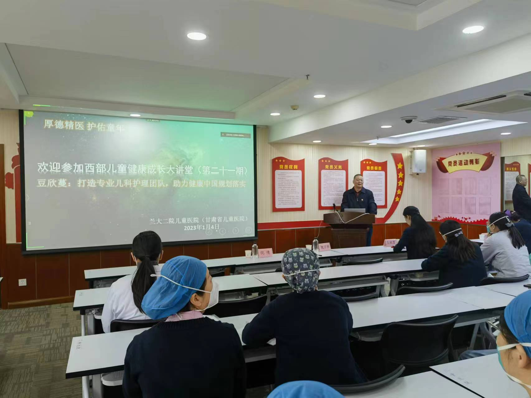 1月4日,甘肃省儿童医院举办第二十一期“厚德精医、护佑童年”西部儿童健康成长大讲堂。大讲堂特邀兰大二院护理部主任豆欣蔓教授现场授课。儿童医院院长魏万胜,副院长倪倩、徐丁,院委会成员、各病区主任、副主任、护士长参会。本次大讲堂采用线上与线下的方式召开,百余人聆听讲座。会议由儿童医院总护士长尹立琴主持。