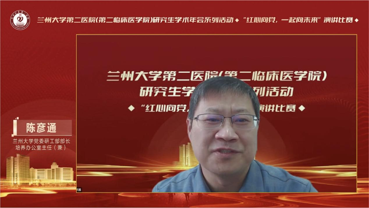 陈彦通指出,近年来兰大二院(第二临床医学院)不断丰富研究生学术年会的内容和形式,将科研创新能力、临床实践能力、综合素质培养融为一体。今后要进一步加强学风建设、营造良好的学术氛围,培养创新精神,鼓励研究生以理想者、担当者、吃苦者、奋斗者的姿态,争做新时代好青年。