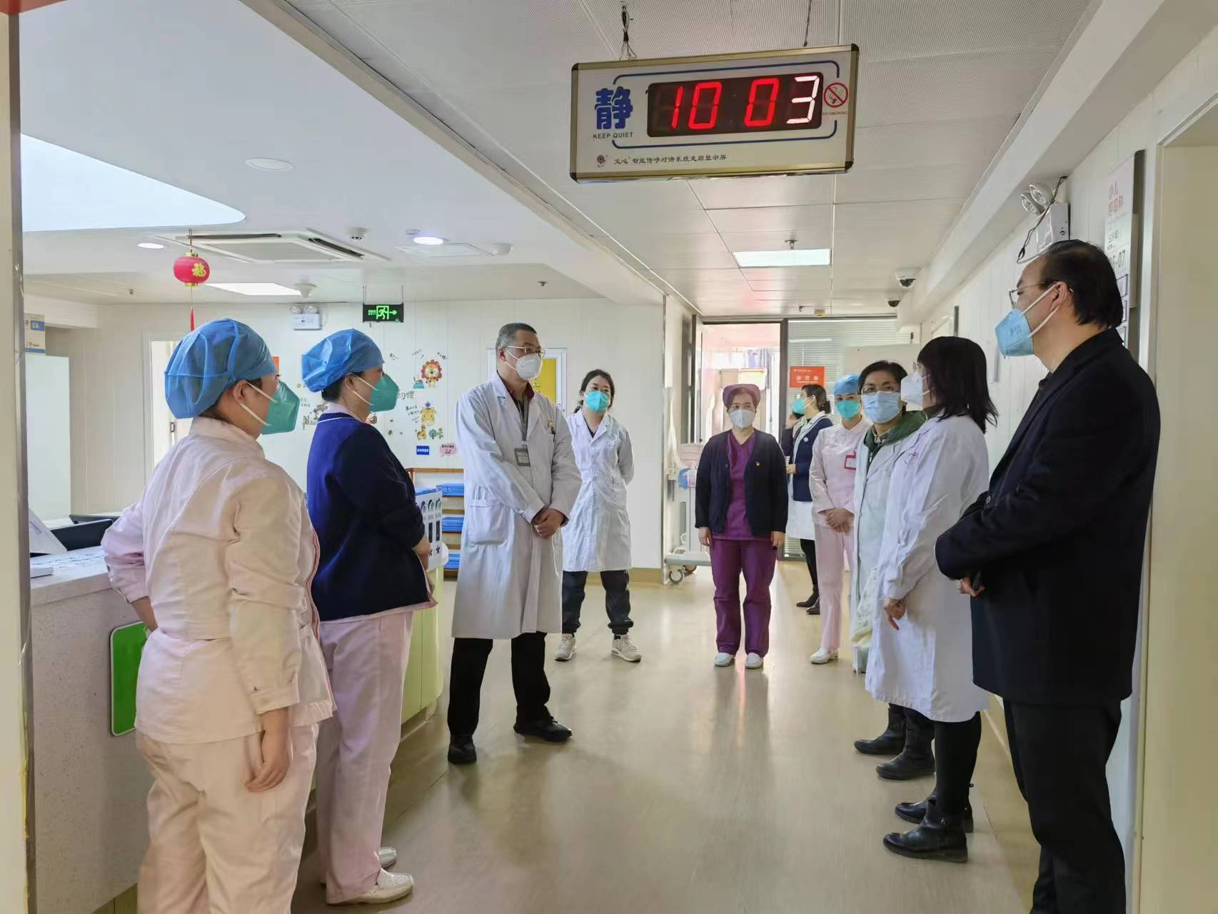 检查组一行对儿童医院门急诊、儿童医院各病区、医技科室床位使用情况、患儿收治工作、患儿及家属安全管理、医疗安全、护理质量安全、节假日排班、诊疗技术规范、公共区域日常清洁消毒、物资储备等各项工作进行了仔细督导检查,对辛勤工作的医护人员表示春节慰问,要求各位医护人员务必保持高度的警惕状态,确保节假日期间医疗护理安全不松懈,全力以赴保障春节期间患儿的医疗护理安全。