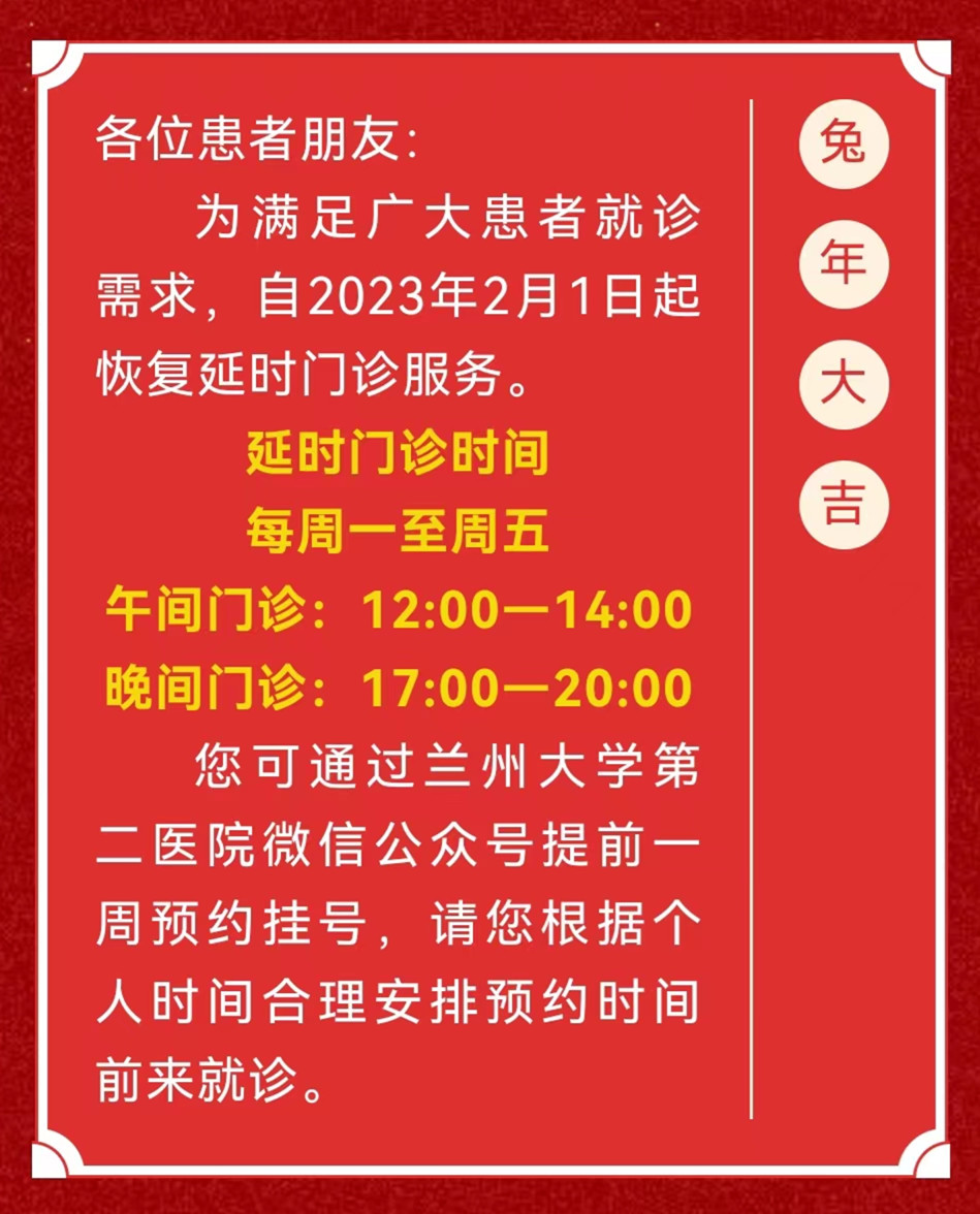 自延时门诊开展以来,兰大二院每日可多为400余名患者提供医疗服务,患者可在下班、放学后合理安排时间前来就诊,满足了不同群体的就医需求,真正做到了想患者之所想,急患者之所急,为更多患者提供了便捷的就医服务。
