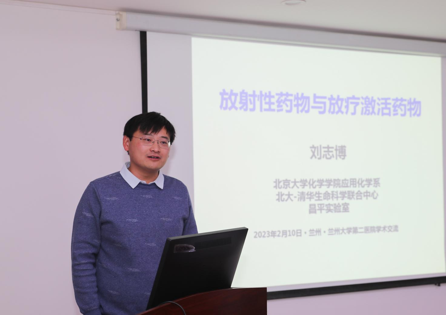座谈期间,刘志博教授作了题为《放射性药物与放疗激活药物》的学术报告。他围绕医用核素严重短缺问题,从搭建相关平台、开发核素分离工艺、制备紧缺核素,发展新核药等方面进行了深入浅出的讲解。会后,刘志博教授作为答辩委员会主席参加了兰大二院核医学研究生开题论文答辩。