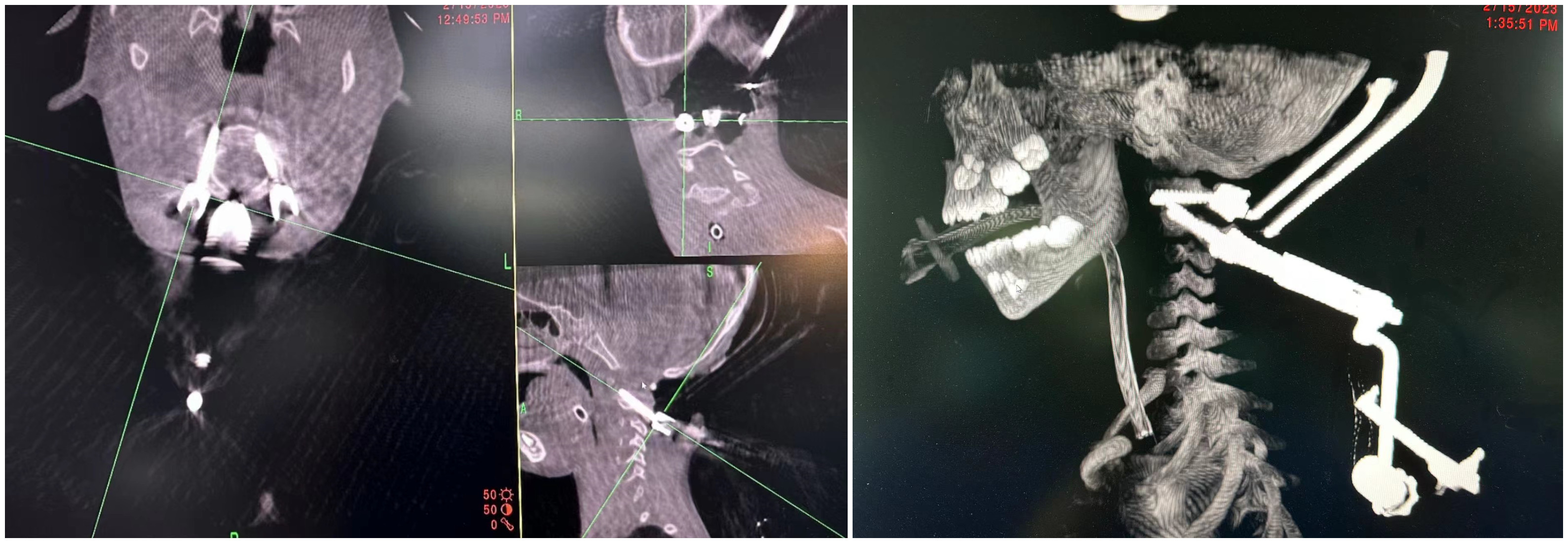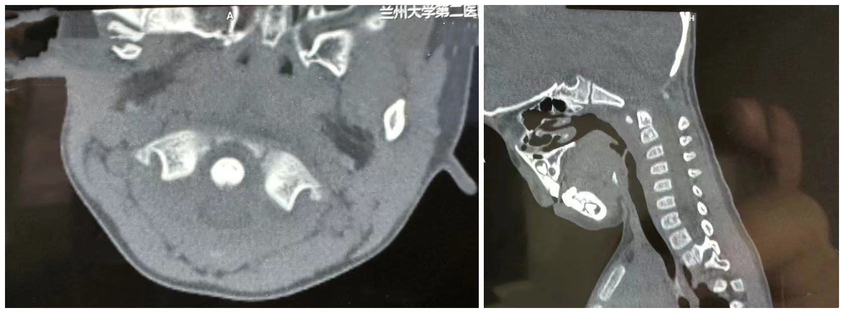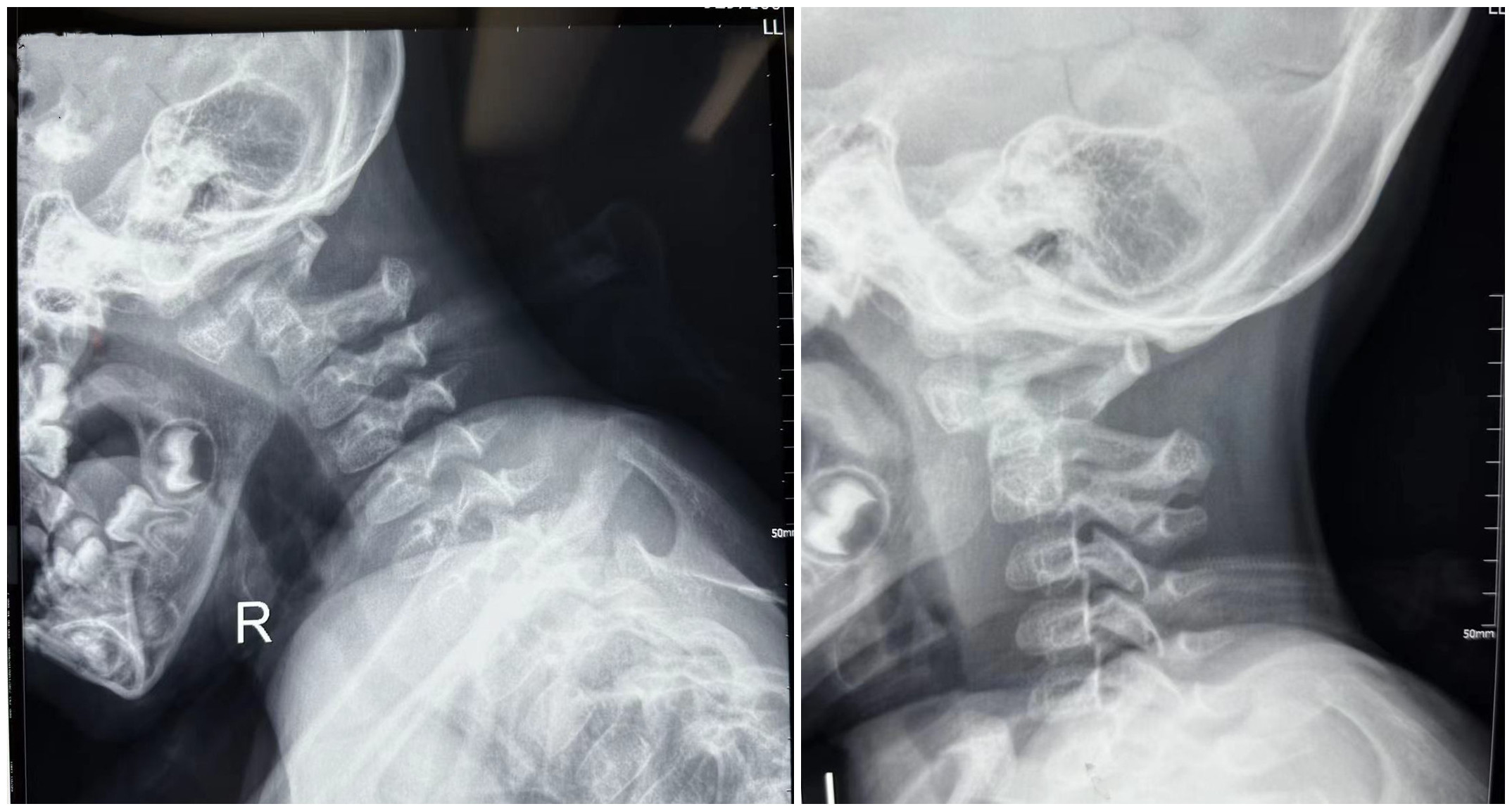 患儿因车祸导致颈部疼痛、活动时疼痛明显加重,收住骨科二病区,主诊医生根据病史情况,结合检查、检验结果及临床表现诊断为寰枢椎脱位。因患儿年幼寰枢椎钉道狭窄,周围有重要的血管、神经,常规手术方式风险较大,经讨论评估后,拟使用“O”型臂导航系统辅助进行寰枢椎脱位手术。术中患儿病情稳定,术后症状明显改善,恢复良好。