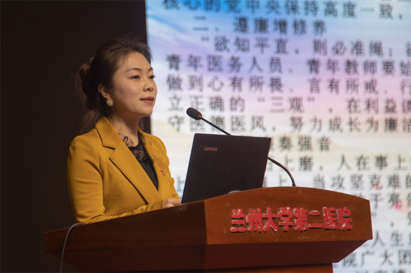 为深入学习宣传贯彻落实党的二十大精神,一体推进“不敢腐、不能腐、不想腐”目标,引领广大青年践行社会主义核心价值观和医疗机构工作人员廉洁从业九项准则,2月24日下午,纪委办公室、监察处联合院团委开展以“青年成长,清风护航”为主题的2023年兰大二院青年学纪遵廉活动。活动由团委书记赵磊主持。