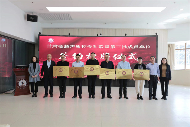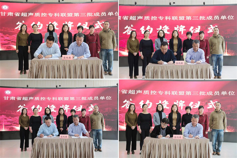 会上,杨建文代表兰大二院与礼县人民医院、民勤县人民医院、西和县人民医院、秦安县人民医院、山丹县人民医院签订《甘肃省超声质控专科联盟协议书》,并授牌。同时,白育萍、杨建文、聂芳、胥萍共同向参会成员单位代表赠送《甘肃省超声标准化切面扫查及测量规范》图书。