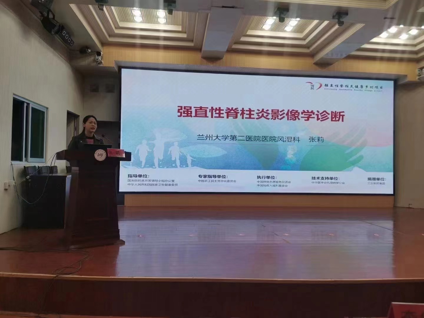 活动中,专家们开展了学术交流、门诊示教、教学查房、义诊宣教及疑难病例讨论等。同时,兰大二院风湿免疫科副主任医师张莉以《强直性脊柱炎的影像学诊断》为题进行主题讲座。