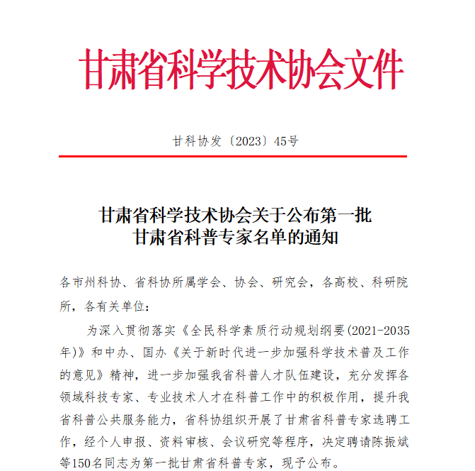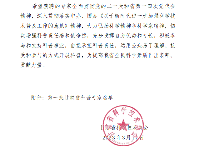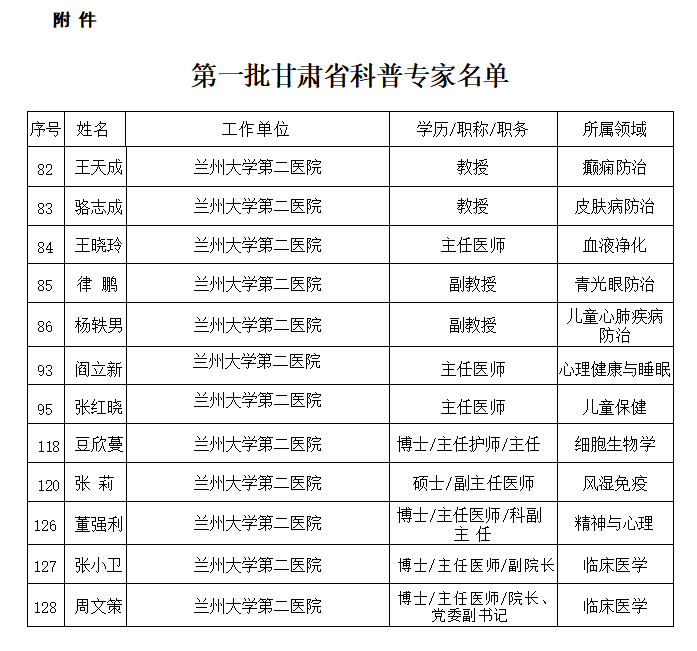 【喜讯】兰大二院多人当选第一批甘肃省科普专家