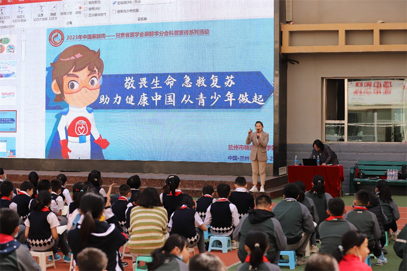 2023年3月27日—4月2日是第七个“中国麻醉周”,为提高公众对麻醉知识的认识,3月29日下午,甘肃省医学会麻醉学分会主任委员、兰大二院麻醉科主任王迎斌组织省内多家三甲医院麻醉专业医护赴畅家巷小学开展了主题为“敬畏生命,急救复苏,助力健康中国,从青少年做起 ”的大型医学科普宣传活动,畅家巷小学的300余名师生参加活动。