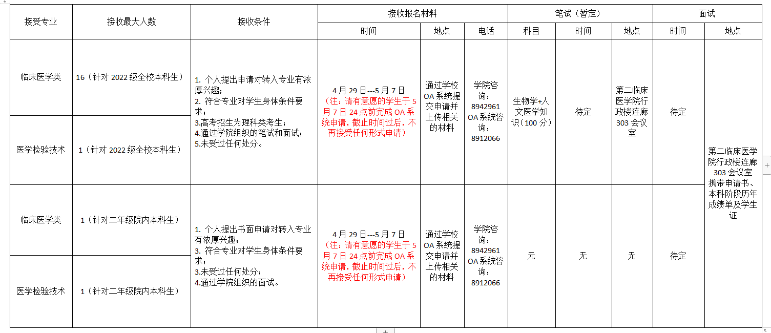 立博欧赔指数第二临床医学院2023年转专业接收方案