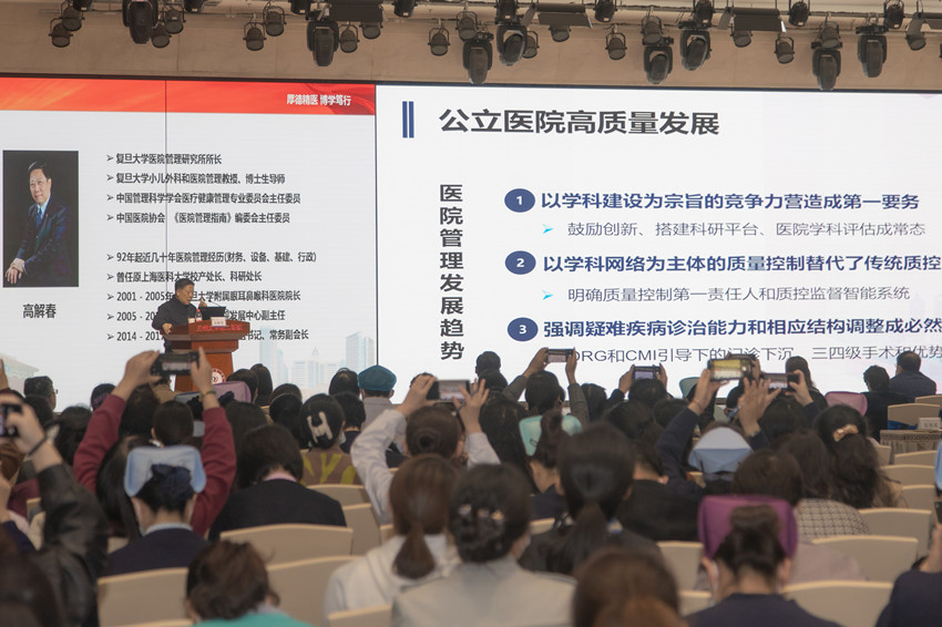 他指出,医院发展要从规模发展向内涵发展转变,学科评估、绩效考核都要以医院声誉和创新水平为导向,以规范化的质量控制和优化流程为基础,努力提升以学科建设为主要内涵的核心竞争力。并结合近三年复旦医院排行榜及科技量值排行榜,深入分析医院学科建设的优势和短板,对新形势下学科建设、内涵质量提升给予指导建议。