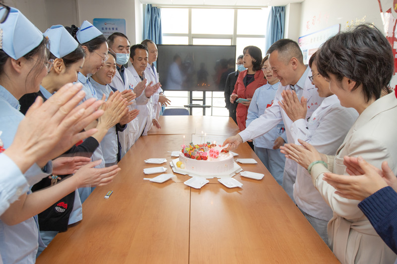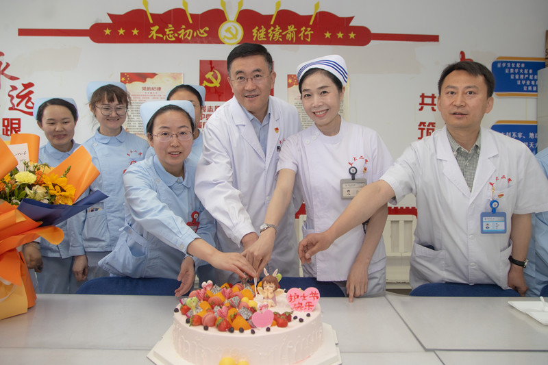 5月12日,在第112个“5·12”国际护士节之际,兰大二院为全院98个护理单元的护理同仁送上节日蛋糕及祝福,共同庆祝护士节。党委书记杨建文、院长周文策、副院长焦作义、工会主席常鹏带领相关处室负责人前往部分临床科室,亲切慰问奋战在一线的“白衣天使”,祝护士兄弟姐妹们节日快乐。