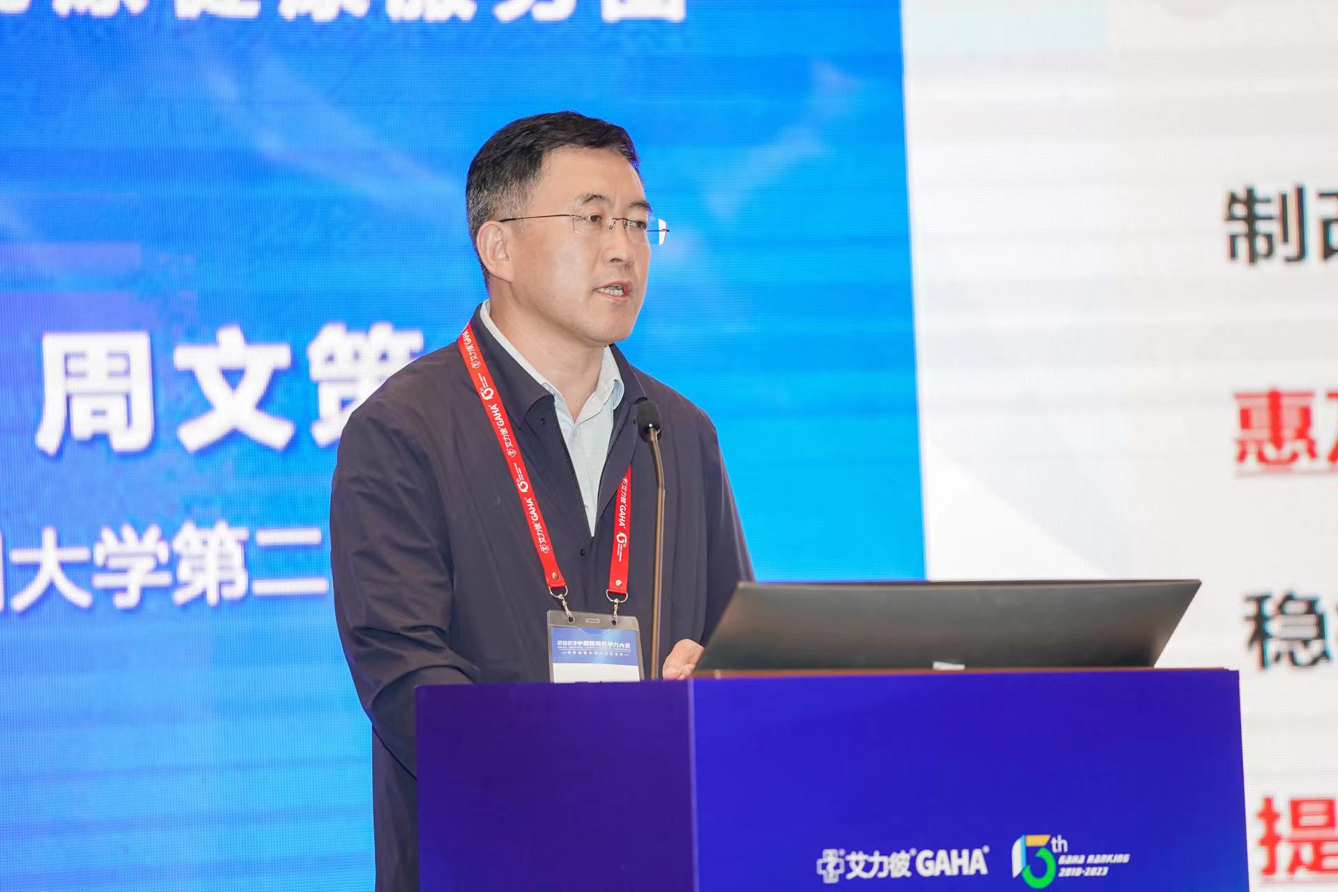 在优质医疗资源扩容与整合的论坛上,院长周文策以《整合优质医疗资源 构建陇原健康服务圈”》为题,就兰大二院构建甘肃省医联体专科(技术)联盟、城市区域医联体、对口帮扶、对外交流、质控中心互联网医院的五大医联体建设模式等内容进行详细讲述,通过五大模式,促进省级优势医疗资源的扩容和有效下沉,为基层医疗机构在学科建设、人才培养、医疗技术、医疗服务质量、医学教育及科学研究等方面帮扶和提升,让基层老百姓在家门口就能获得高质量医疗服务,真正实现“小病不出乡、大病不出县,疑难危重再转诊”的目标。