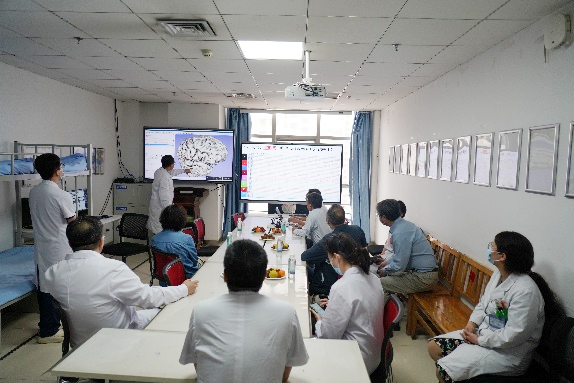 会上,段立嵘对CAAE脑电图培训基地评审流程做了详细介绍。王天成向评审组汇报了医院脑电图相关工作情况。随后,评审专家组一行前往神经内科、神经外科、神经内科ICU、新生儿科等各病区展开实地考察。