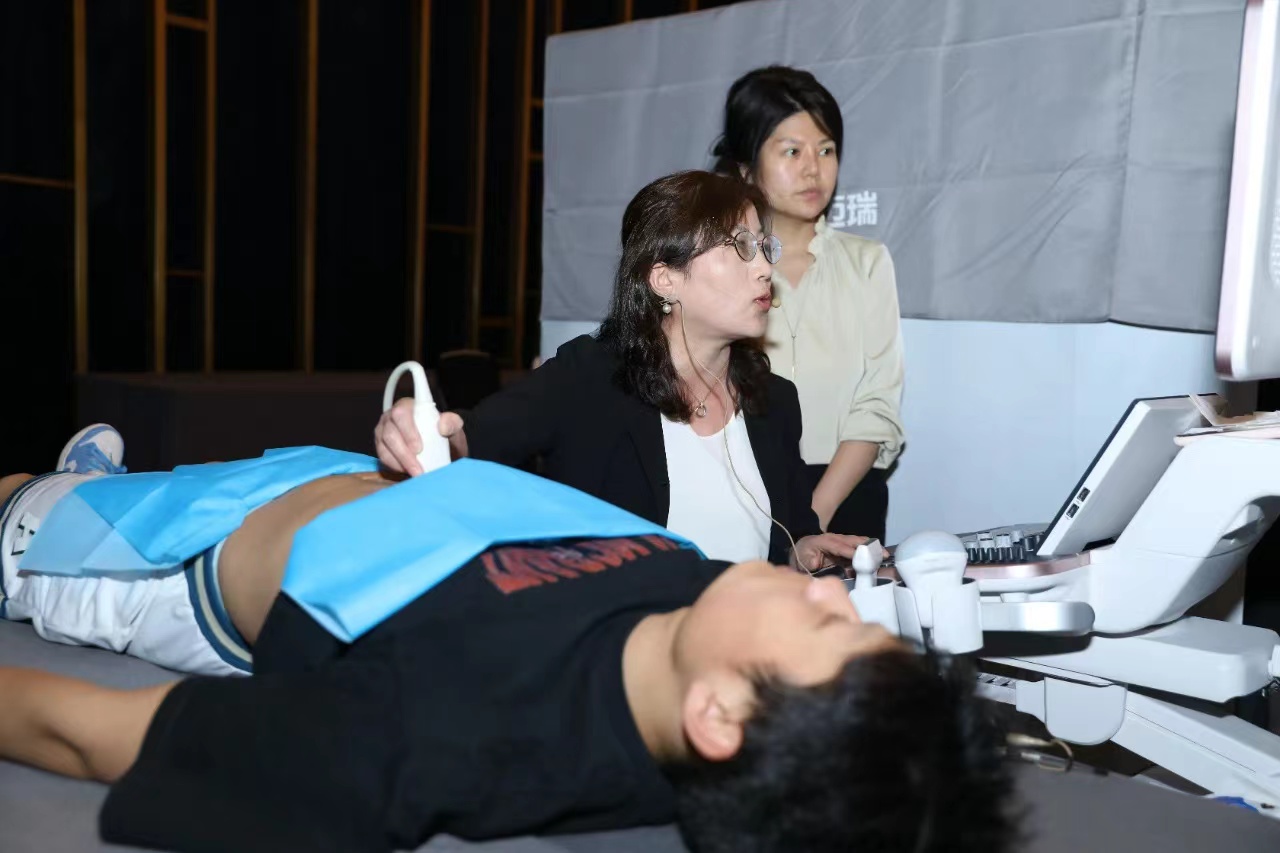 在专家带教实践演示环节,中国医师协会超声医师分会副会长、兰大二院副院长聂芳教授进行了腹部超声检查的操作规范及要领指导演示,同时在青年指导医师带教演示中对来自青海省住培带教老师的带教演示进行了点评。