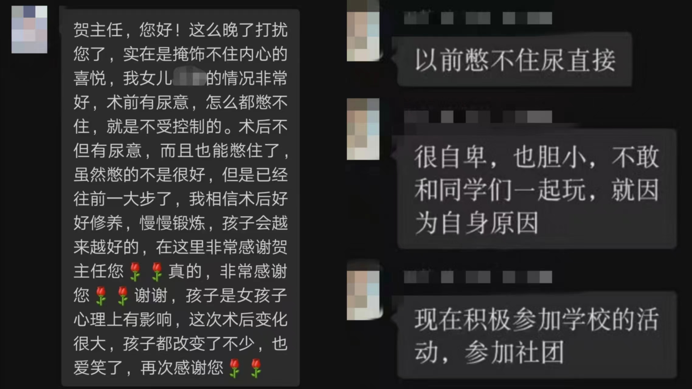 2021年,年仅9岁的微微在无明显诱因下已间断漏尿3年左右,无法控制排尿导致她没有办法和其他同学一起自由活动,连快跑、跳跃都不敢尝试。由于身上时刻散发难闻的味道,同学们也对她越来越疏离,这也严重影响了微微的自信心与自尊心,陷入深深的自卑,从此以来,微微变得越来越孤僻,更不喜欢与他人交谈、接触。