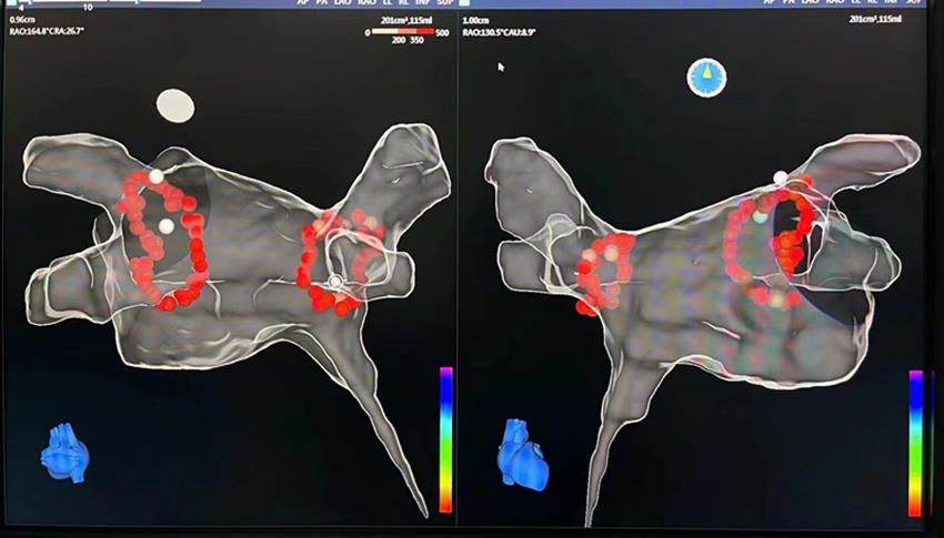 患者女性,54岁,4年前曾在外院因“阵发性室上性心动过速”行射频消融术,术后偶有心悸症状。此次因“阵发性心房颤动”入院,完善检查后,在国产三维标测系统引导下,为患者实施了慢径改良及环肺静脉电隔离术,术后患者恢复良好,现已康复出院。