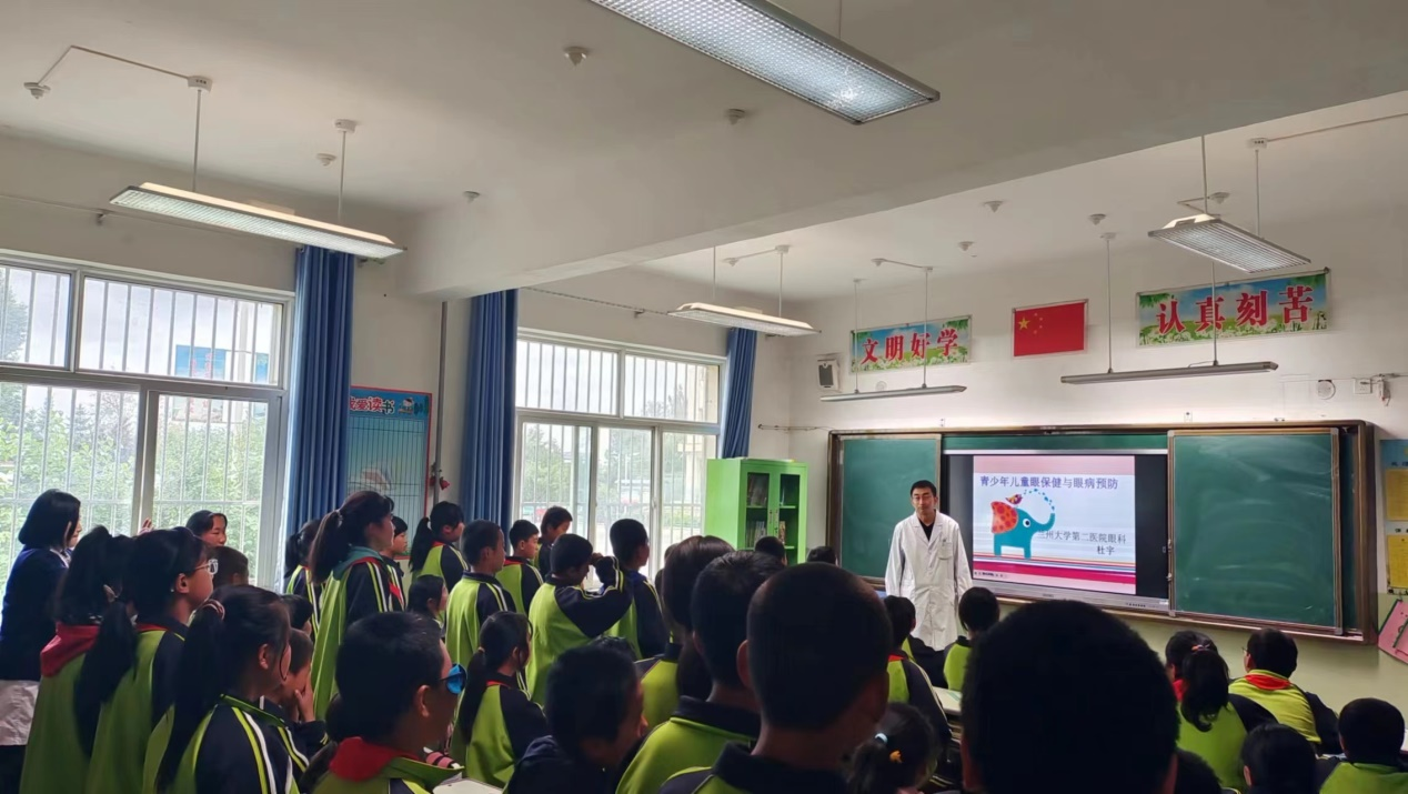 6月2日,兰大二院对口帮扶医疗队队长杜宇的带领临洮县人民医院眼科医护团队,赴临洮县南屏镇三甲小学开展眼健康宣教及义诊活动。