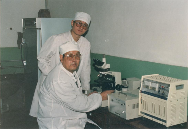 当时,皮研室购置了荧光显微镜、倒置显微镜等国内较为先进的设备,适逢北大医院朱学骏教授来兰讲学,利用讲课的间隙刘铭锐教授特意请他指导,朱学骏教授不辞辛苦,利用休息时间帮助皮肤科安装、调试好了这些仪器,同时带李文竹医师去北大医院皮肤科学习免疫荧光技术。经过3个月的培训,李文竹医师便熟练掌握了免疫荧光技术,回到兰州后,主导积极开展了红斑狼疮、皮肌炎、硬皮病、天疱疮、类天疱疮和变应性血管炎等各种自身免疫性疾病的直接荧光检查工作,随着这项技术的开展,全省各大医院的病人都慕名前往皮研室进行相关检查。