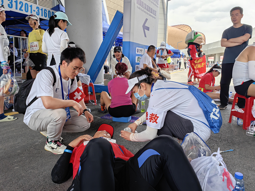 赛前,兰大二院精心选拔110名临床医护人员担任医疗志愿者,并通过红十字会、方舟救援队和体育局组织的培训及考核。团队主要负责半马18Km-半马终点和全马35Km-39Km及全马终点冲刺阶段区域的医疗保障任务。