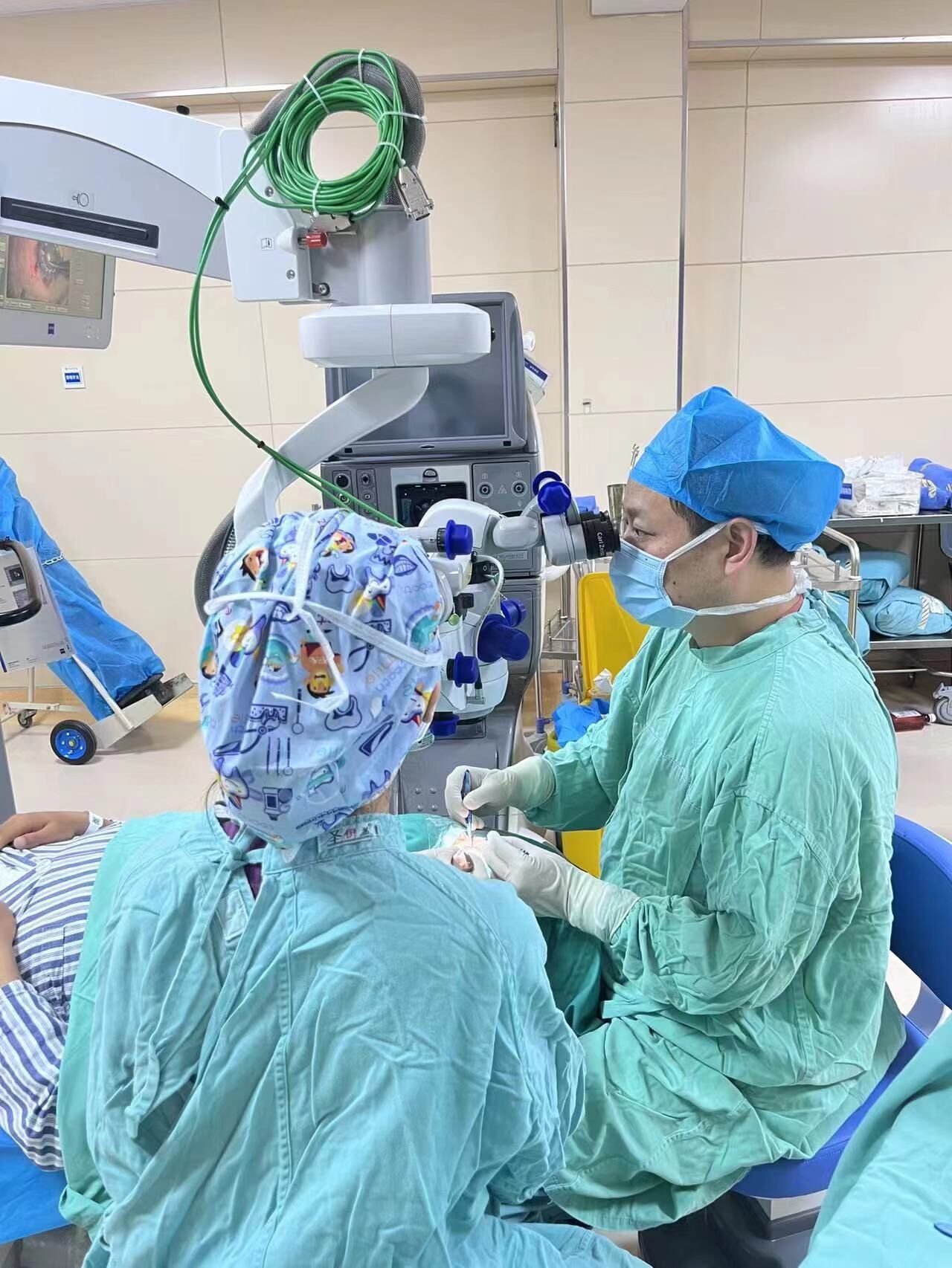 兰大二院眼科于2020年率先在甘肃省开展DALK手术,DALK术是完全去除病变的角膜基质组织,仅保留后弹力层及内皮层(共约10微米厚度),再移植供体角膜组织的方法。该手术既保留了受体健康的角膜内皮细胞,避免后期角膜移植片内皮细胞衰竭需再次移植的问题,降低术后免疫排斥发生率,具有穿透角膜移植术和传统板层角膜移植术的优点及更好的光学效果,同时也避免了两种术式的缺点。但该手术操作难度大,风险高,术中后弹力层容易破裂,需转为穿透角膜移植术,因此经常需要有备用的新鲜保存角膜植片,限制了该术式的开展。