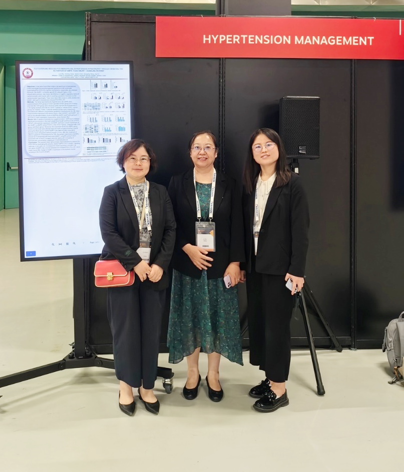 近年来,余静教授团队在女性高血压和高血压相关心脏损害方面开展了大量的研究。此次学术年会共有6篇研究论文在大会中进行了交流,涉及高血压及其心脏损害、食盐摄入与高血压及女性高血压等3个研究方向。王文婷就《雄激素在绝经后女性高血压心肌肥厚机制研究》进行了汇报交流,获得来自欧洲同行专家的高度认可,这一研究发现对于深入了解绝经后女性高血压靶器官损害的发病机制提供了有力的支持,并为临床医生改善绝经后女性高血压心肌肥厚的治疗策略具有重要的指导意义。