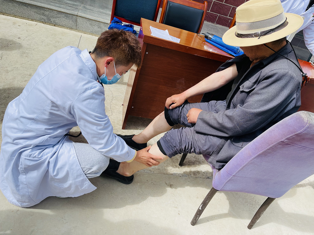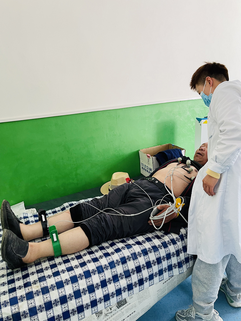 义诊过程中专家们发现一名患者呼吸急促、胸闷气短,查体发现双下肢水肿、四肢湿冷、无法平卧,心电图检查后提示心律不齐、右室增大,初步诊断为心衰、心律失常,立即联系县医院进行转诊治疗,为患者争取了宝贵的救治时间。