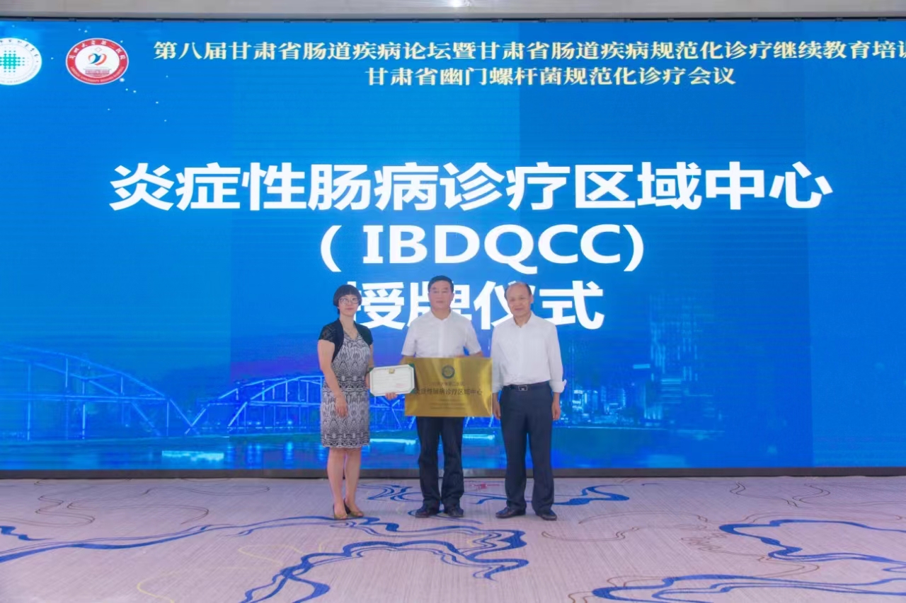 会议期间,吴开春教授、何瑶教授代表中华IBD学组为兰大二院授予“全国炎症性肠病诊疗区域控制中心(IBDQCC)”匾额。兰大二院作为甘肃省首家获此殊荣的医院,近年来,不断健全和完善炎症性肠病的规范化诊疗路径,全心全意服务患者,在IBD诊疗方面处于省内领先水平。多年来消化科接收和治疗了省内最大数量的疑难复杂、危重症肠道疾病患者,获得了患者及家属的一致好评。