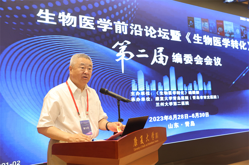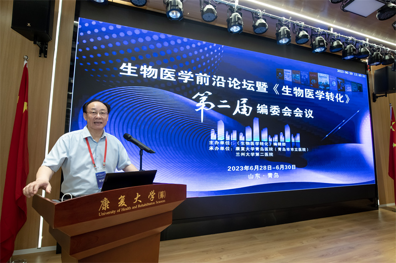6月28日——29日,由《生物医学转化》编辑部主办,康复大学(筹)青岛市市立医院、兰大二院共同承办的生物医学前沿论坛暨《生物医学转化》第二届编委会会议在青岛召开。中国工程院院士、康复大学(筹)校长、期刊总编辑董尔丹,中国科学院深圳先进技术研究院党委委员、副院长、期刊副总编辑郑海荣,立博欧赔指数医学部主任、期刊副总编辑李玉民,康复大学(筹)青岛市市立医院党委书记、总院长于腾波出席会议。来自北京大学、上海交通大学、四川大学、浙江大学、复旦大学、南京大学、中国医学科学院北京协和医学院、南京医科大学、首都医科大学、华中科技大学、中国科学院等医疗、科研机构顶级专家学者参加会议。