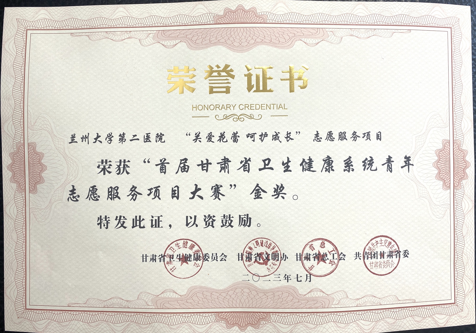 兰大二院在首届甘肃省卫生健康系统青年志愿服务项目大赛中荣获金奖