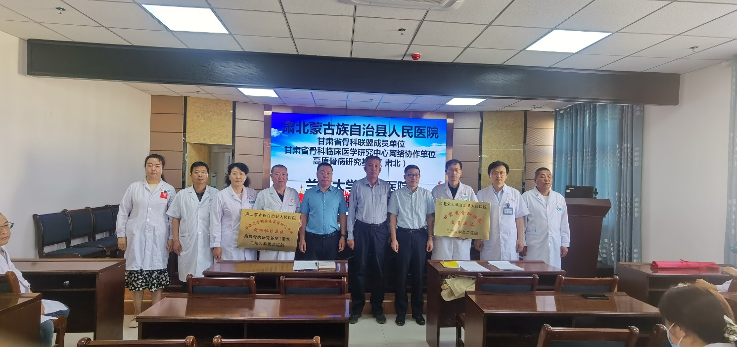 6月25日上午,兰大二院与肃北县人民医院建立骨科联盟,该医院成为甘肃省骨科临床医学研究中心网络协作单位(高原骨病研究基地),标志着肃北县医疗卫生服务迈上了新的台阶。县委常委、副县长王东云出席仪式。仪式上,由兰大二院骨科主任夏亚一教授为肃北县人民医院授牌。