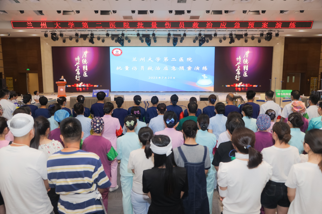 7月25日,兰大二院护理部、医务处、急救中心联合开展批量伤员救治应急演练活动。医务处副处长孟灵、医生团队代表、总护士长、护士长、护理紧急调配库成员、急诊科护士、进修护士近200人参加。开幕式由护理部副主任李彦俊主持。