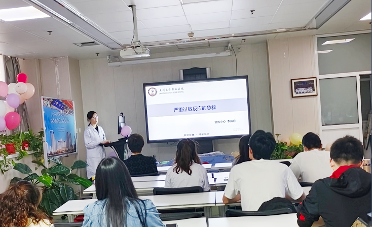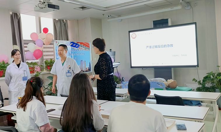 培训围绕如何识别过敏反应及相应的急救处理措施展开,重点学习如何识别患者呼吸心脏骤停及高质量心肺复苏技能。李佩容医师以一例患者在MRI检查过程中突发过敏反应为例,详细讲解了过敏反应的临床表现、分级和过敏反应的急救方法,再次强调了医护人员正确识别过敏反应及选择正确处理措施的重要性。