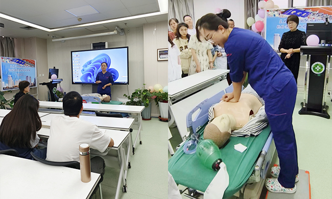 张帆护士针对突发呼吸心跳骤停患者如何实施心肺复苏进行了培训,详细讲解心肺复苏急救技术的操作要点及注意事项,并进行模拟操作演示及现场练习指导。