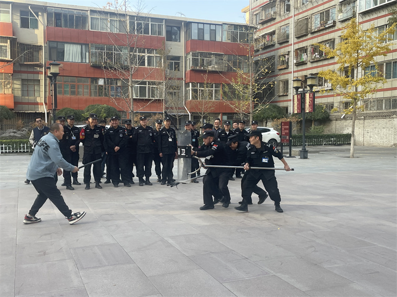 为进一步加强医院保安队伍建设与管理,提高保安人员综合素质、技能水平,强化和提升保安员面对突发事件的应急处置能力,巩固医院安全风险防控体系,自2023年10月中旬起,保卫处治安科每周开展两次保安员综合技能培训及演练活动。