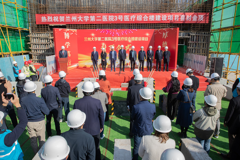 兰大二院3号医疗综合楼建设项目是贯彻落实国家《公共卫生防控救治能力建设方案》要求,补齐甘肃省公共卫生特别是重大疫情防控救治能力短板的重要举措之一。项目总建筑面积84780平方米,地上24层,地下4层建筑,主要设置门急诊、感染科、住院部等业务用房,培训、科研用房,重症监护病区(ICU),“平战结合”可转换病区,P2实验室,应急救治物资储备用房等。该项目于2021年8月4日正式开工建设,历经800多个日夜,目前项目裙楼及主体结构工程全部封顶,比原计划提前了一个月,即将进入内部装饰阶段,并将于2024年底完成竣工验收投入使用。