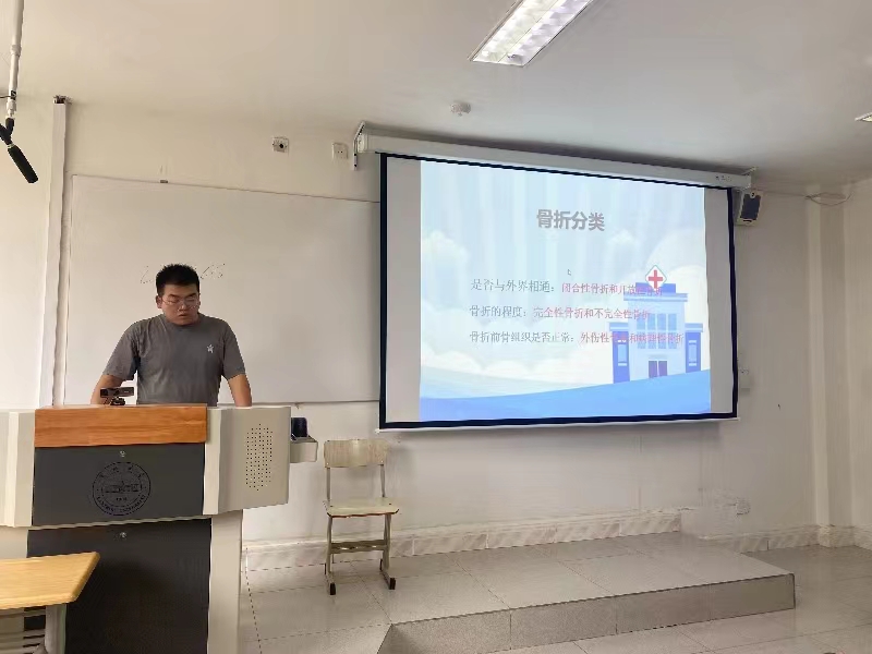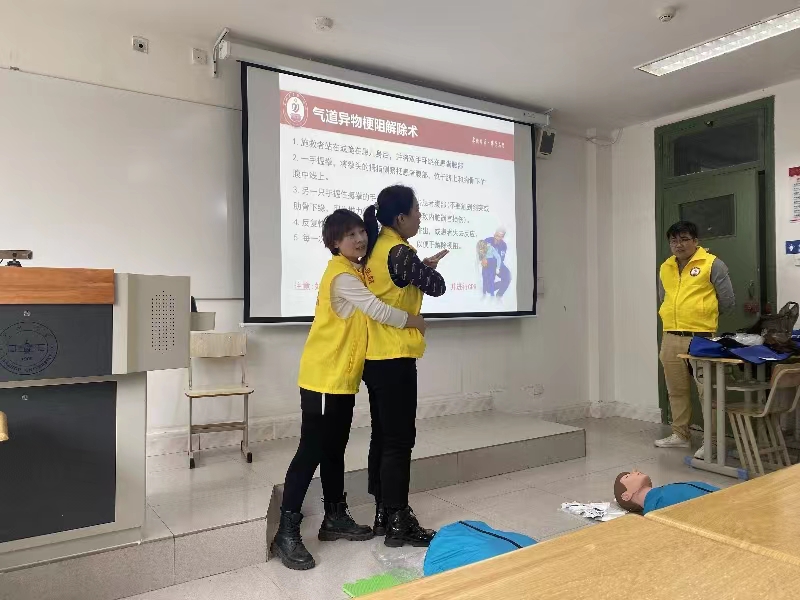 活动现场,团委副书记张小敏为同学们详细讲解了当突发心脏骤停时如何在“黄金三分钟”运用心肺复苏技术挽救生命。同时,针对气道异物梗阻突发事件,如何正确运用气道异物梗阻解除术进行自救和互救进行了讲解和示范。第二临床医学院研一学生闫世顺为大家讲解了意外骨折后的应急处理和包扎方式并进行了现场操作示范。